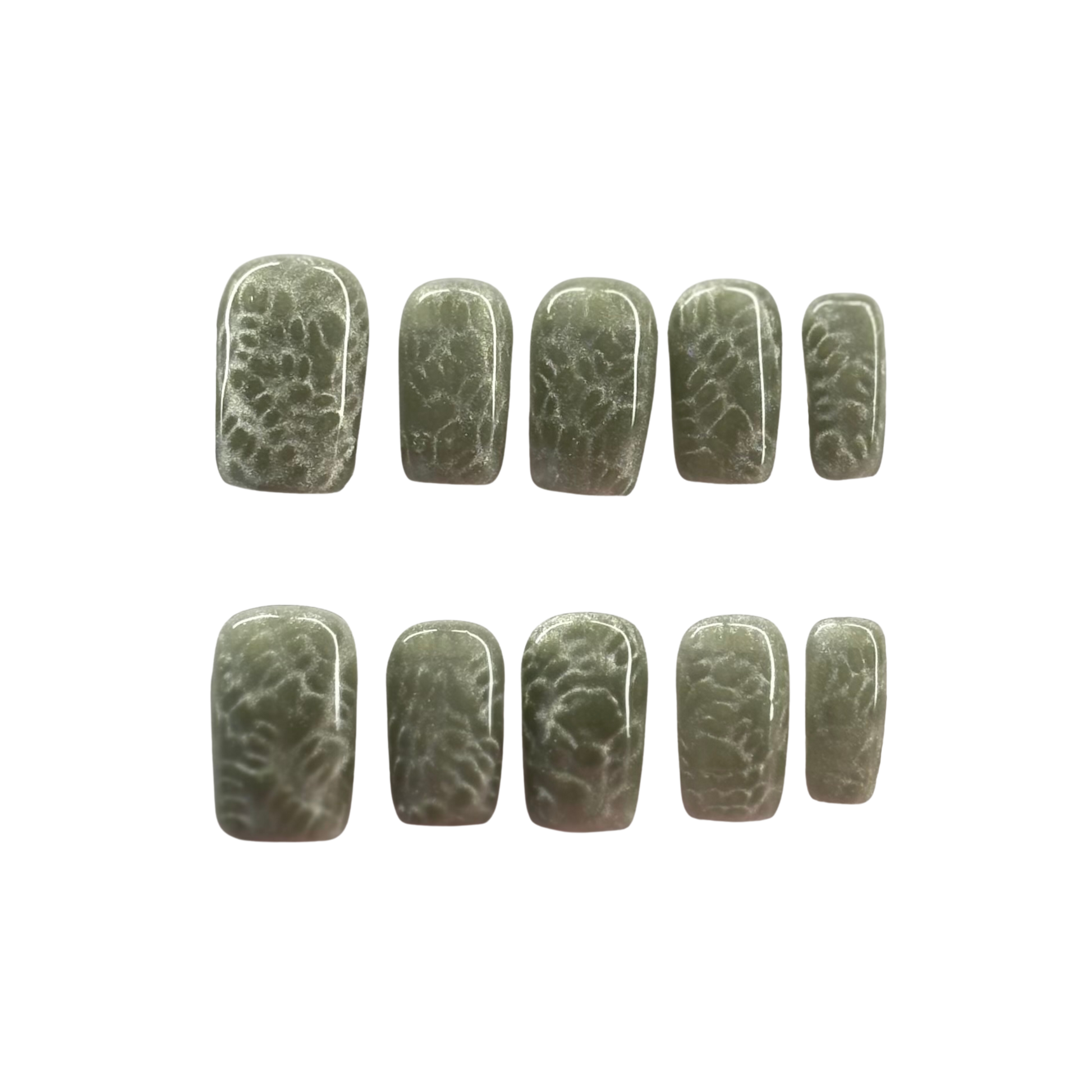 Shown in photos for style reference. Available in almond or square, short or long.
