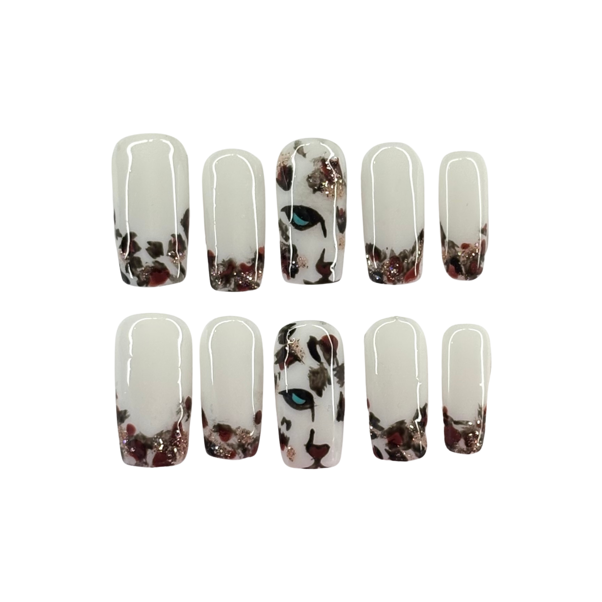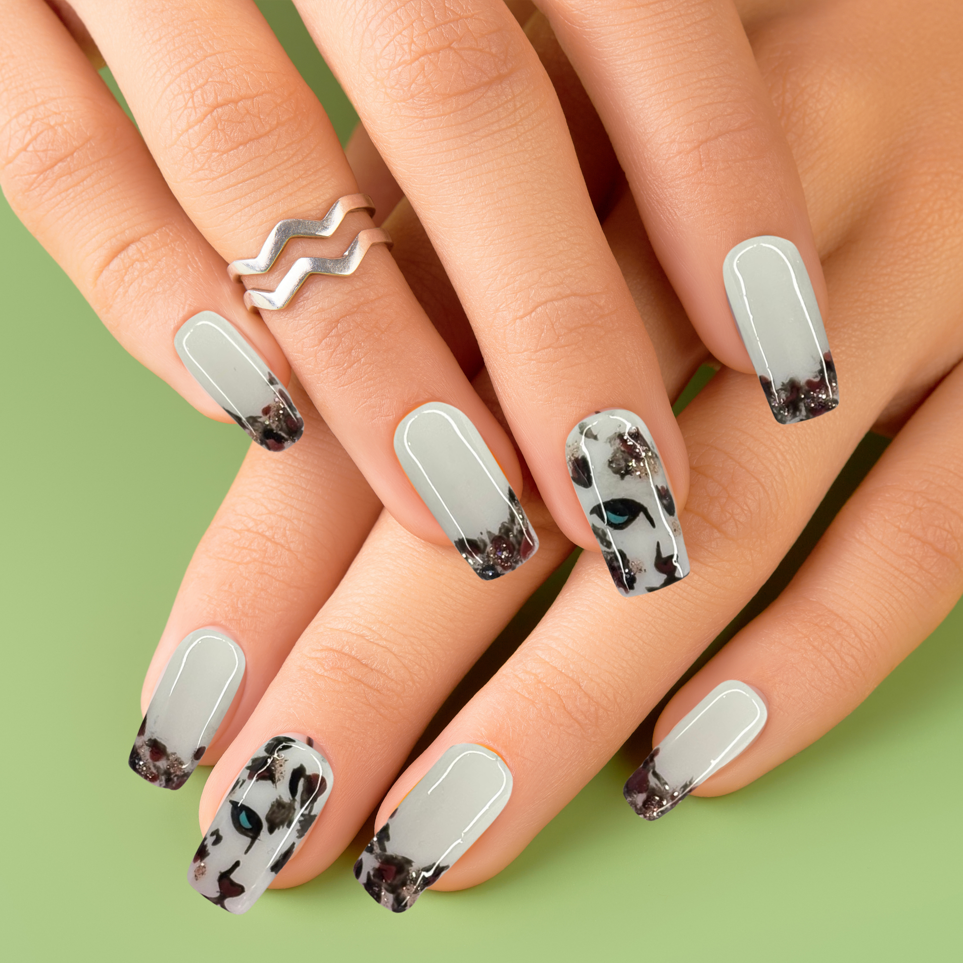Cheetah print French-tip style spots with soft shading create a polished cheetah print that reads chic rather than loud. Pair it with denim, neutrals or a red lip for instant trend points.