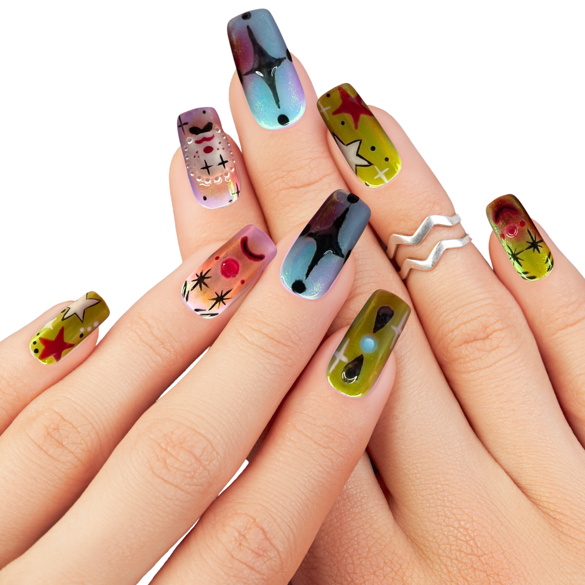 - File away softened glue from the inside of the press-on, wipe clean, and store flat.