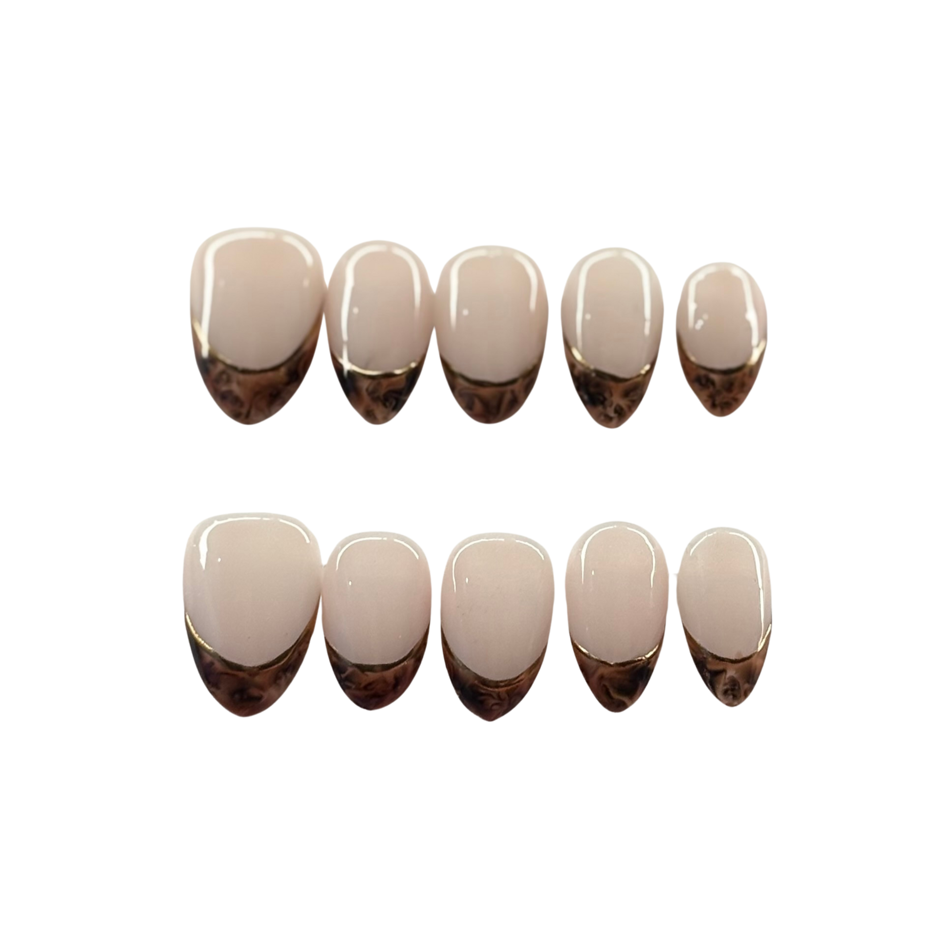 A modern take on a timeless favorite. This set pairs a sheer nude base with translucent tortoise shell tips for a chic, wearable look that elevates every outfit. The layered amber and chocolate tones create depth that photographs beautifully in natural and indoor light. Ideal for work, weddings, and year-round style.
